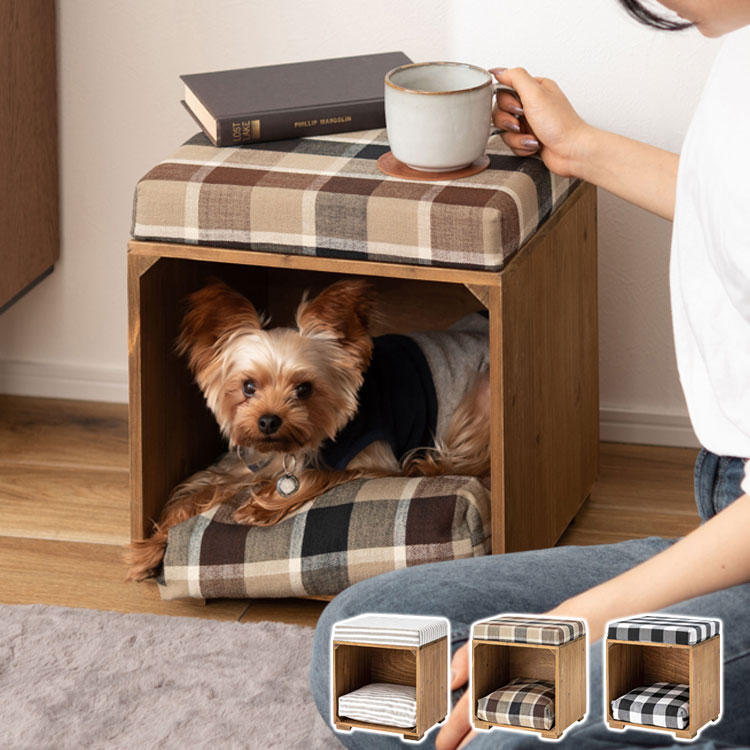 スツール ペット ペットスツール クッション 天然木 かわいい おしゃれ 小型犬 猫 ネコ いぬ チェック シンプル コットン(代引不可)