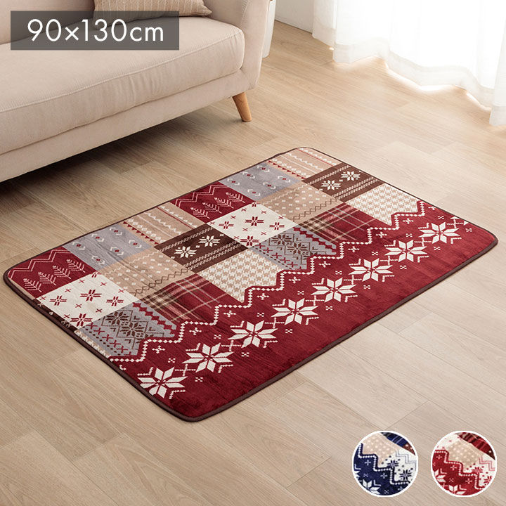ラグ 長方形 洗える なめらか フランネル レッド 約90×180cm 約1畳 ホットカーペット対応 リーチェ(代引不可)