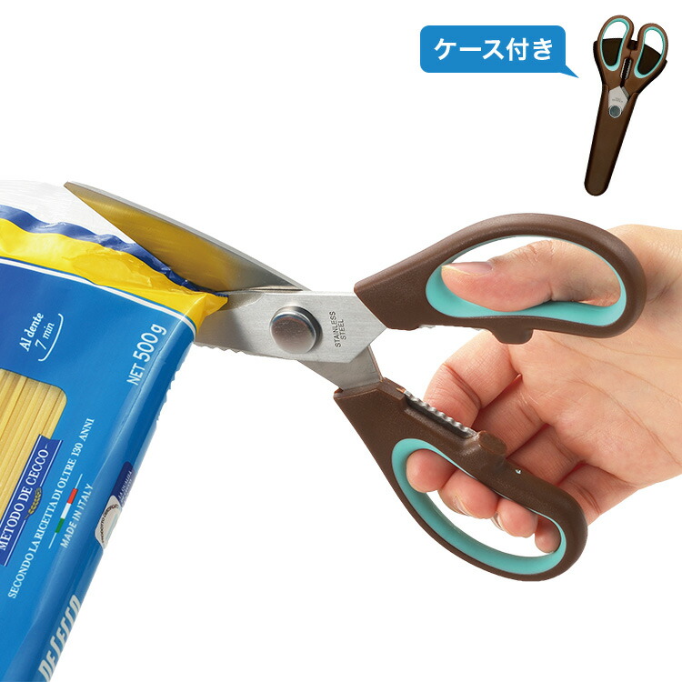 コンパクトキッチンハサミ 収納ケース付 やわらかグリップ 手が痛くなりにくい 食品 袋 カット ウロコ取り