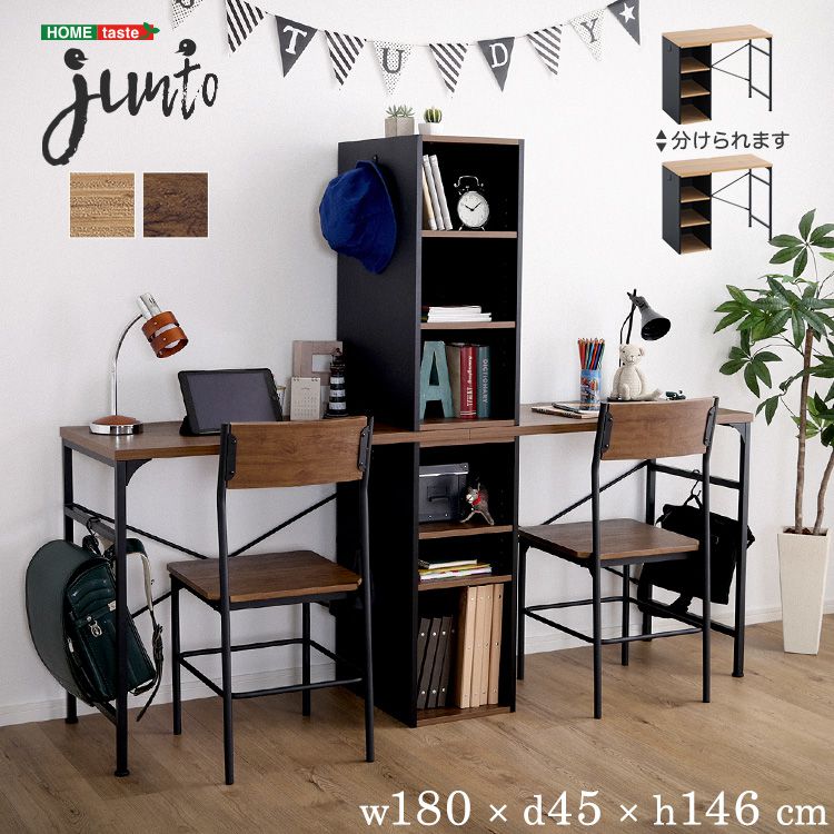 ヴィンテージツインデスク 90×90cm 学習机 学習デスク 勉強机 子ども部屋 おしゃれ シンプル 可動棚付きラック 習い事 収納 収納ラック付デスク ラック付き デスク リビング(代引不可)