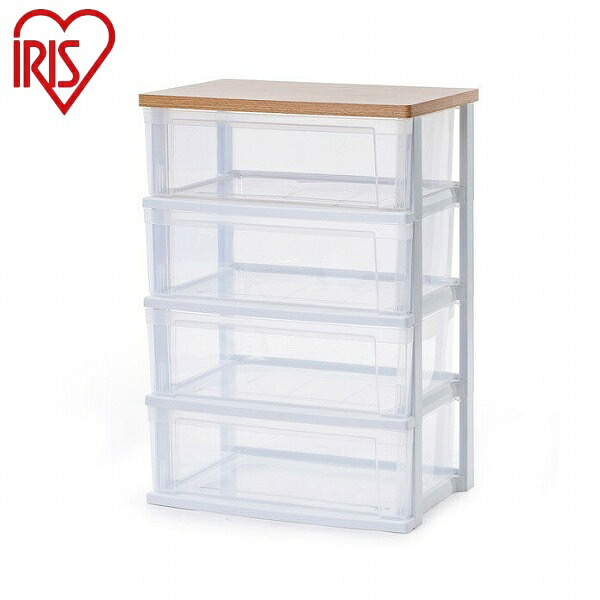 アイリスオーヤマ ウッドトップチェスト 4段 NSW-544WT タンス たんす 北欧 4段 おしゃれ クリア 木天板 押し入れ収納 押し入れチェスト 収納ボックス IRIS OYAMA(代引不可)